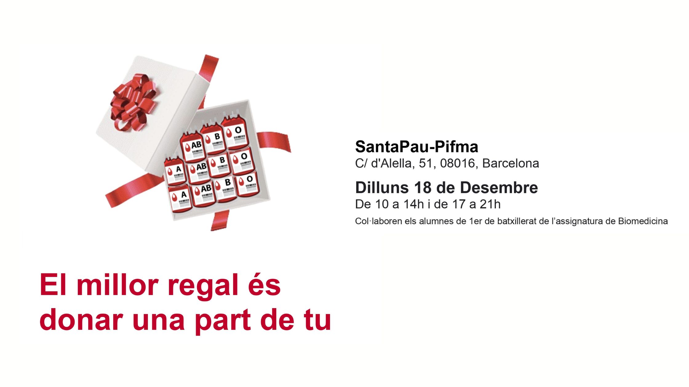 Aquest és el setè any que estem col·laborant amb el Banc de Sang i Teixits amb l’organització de la campanya de donació de sang i de medul·la.